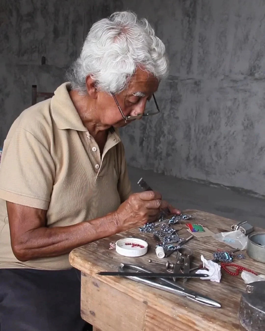 Jalil Majul creció en Taxco, Guerrero, un pueblo donde la platería no es solo un oficio, sino un patrimonio cultural que impregna cada rincón. Proveniente de una familia dedicada a la distribución mayorista de joyería, pasó su infancia visitando talleres y experimentando la magia de ver cómo el metal cobraba forma bajo manos expertas. Aprendió a valorar el arte detrás de cada pieza, la paciencia de los artesanos y la historia que esconde cada técnica. Pero con el paso de los años, también presenció cómo la producción en masa amenazaba con silenciar el legado de su tierra natal. Mina Palmera es su forma de rendir homenaje a esas tradiciones, de asegurar que la platería taxqueña siga brillando con luz propia.